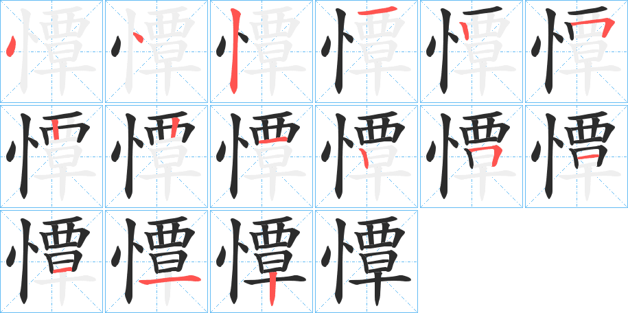 〔憛〕字拼音是tán,部首是忄,总笔画是15画。